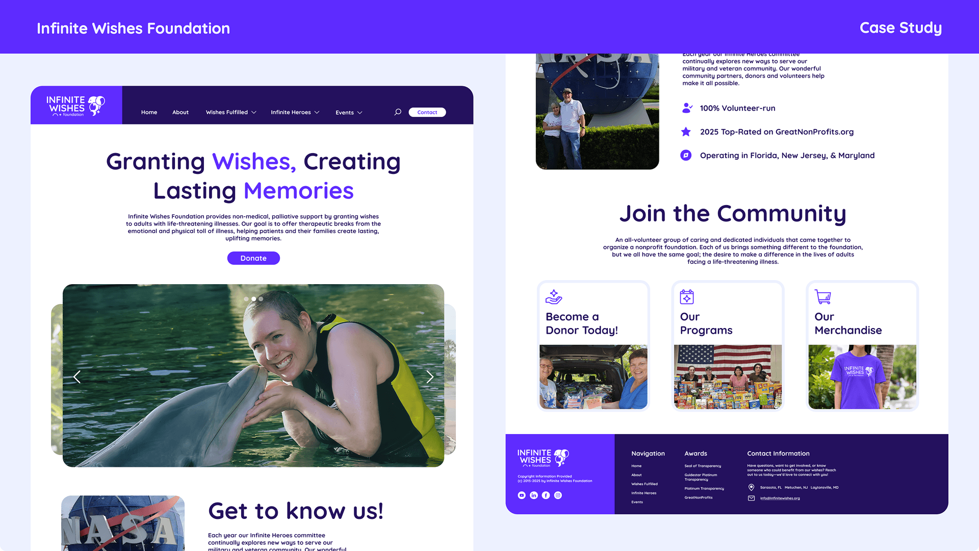 A website plays a crucial role, providing an easily accessible platform for people to learn more about the foundation from anywhere, at any time. This is especially important as the foundation has already been able to help individuals outside of Florida, and can continue to help even more. By making the website more user-friendly and aligned with the updated brand, it ensures that more people, no matter where they are, can easily find the support they need. This increased accessibility will help promote the foundation’s mission and ultimately grant more wishes to those who need them most.