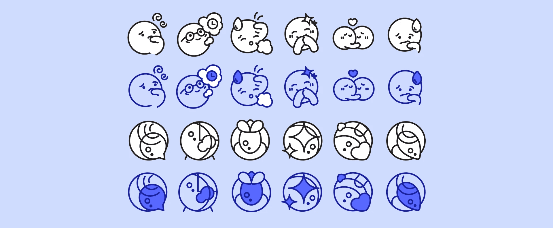 The final icon set turns emotions into bold, graphic symbols that feel thoughtful without being too literal. Each icon was designed to be simple, expressive, and easy to recognize, creating a clean, cohesive way to represent different feelings across the project.
