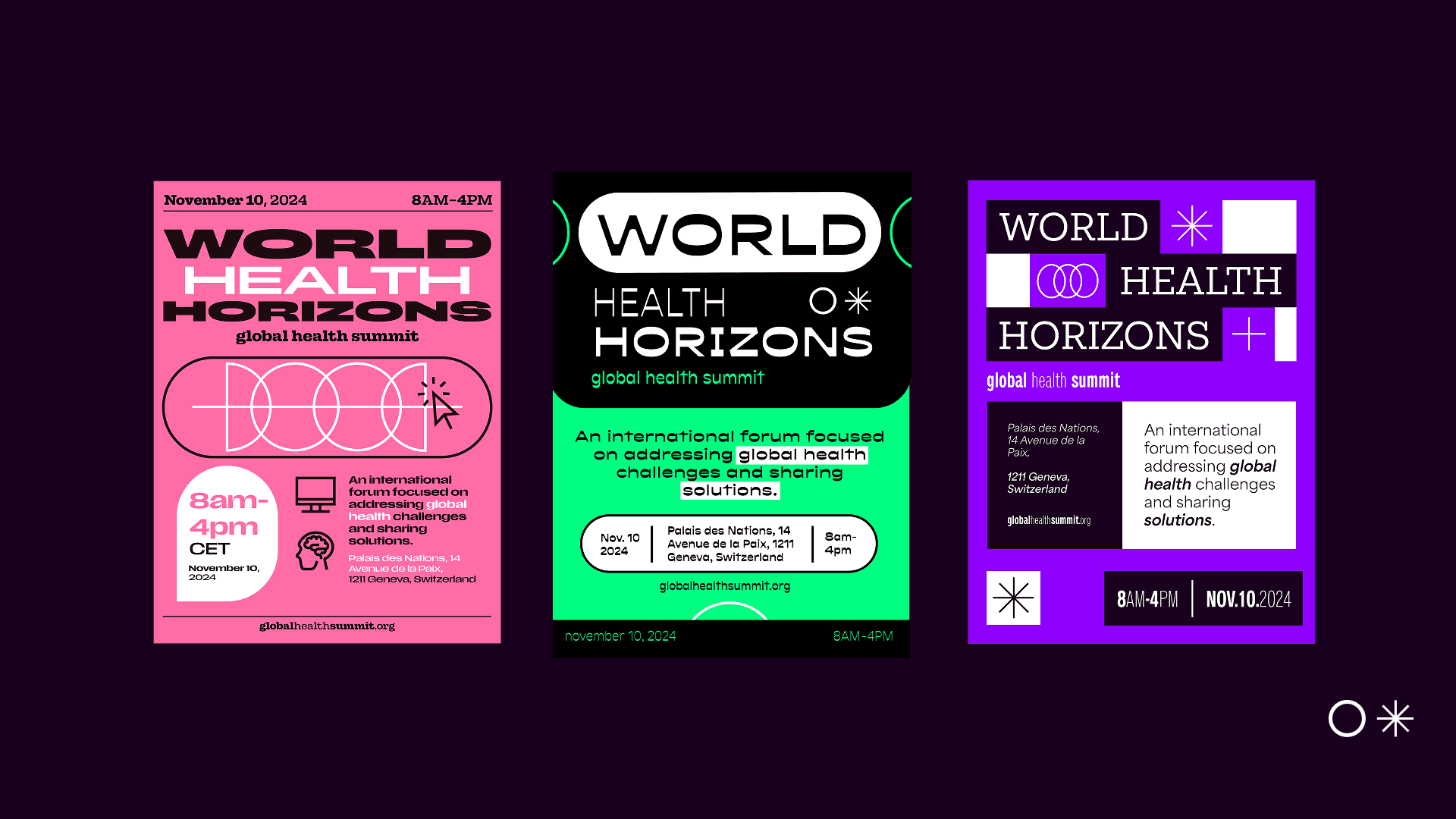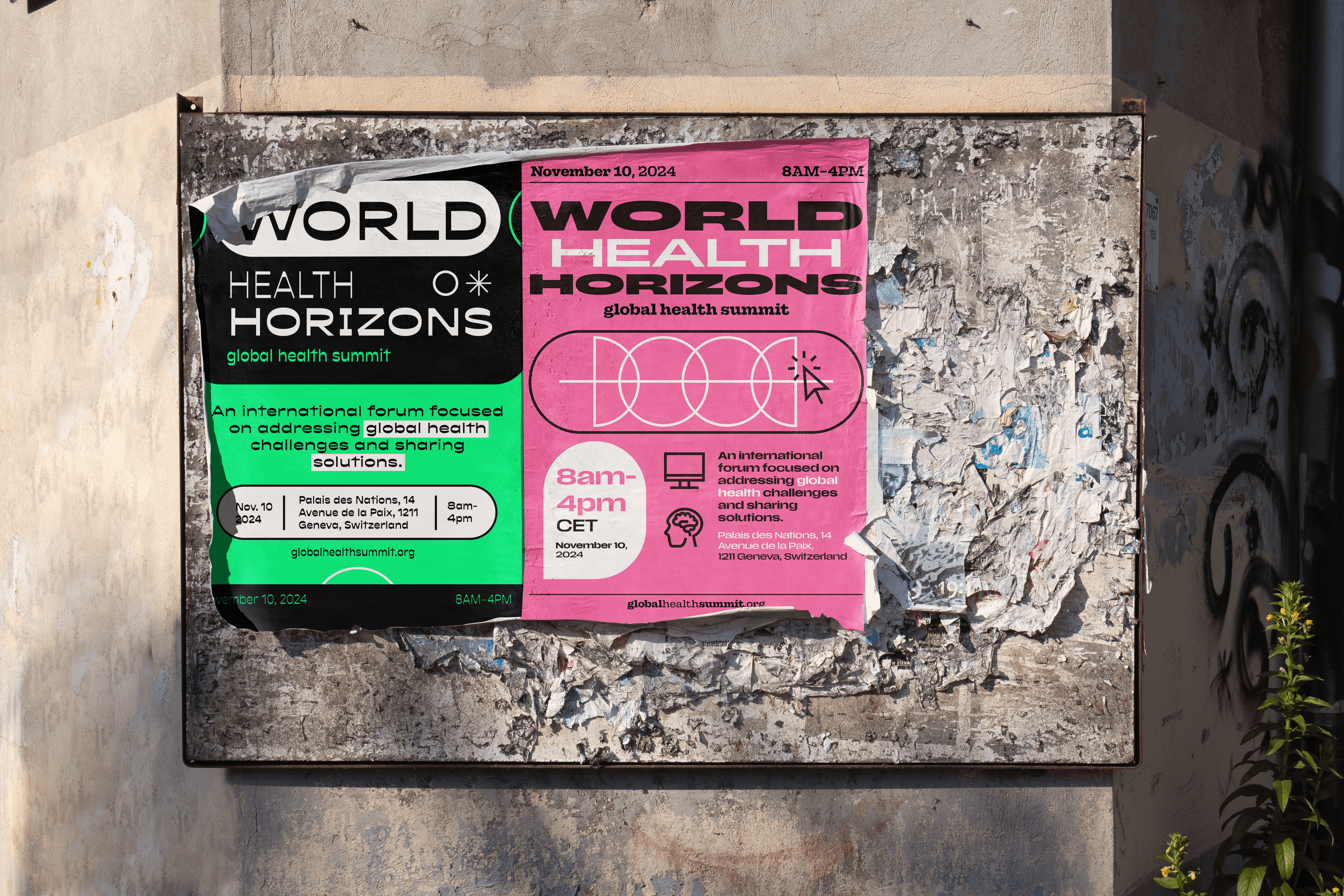 For the November 20, 2024, Global Health Summit, I designed a series of three posters for World Health Horizons, an initiative focused on the future of global health. Using minimal typography, color, and illustration, I created bold, intentional visuals that captured attention while conveying a clear, meaningful message.